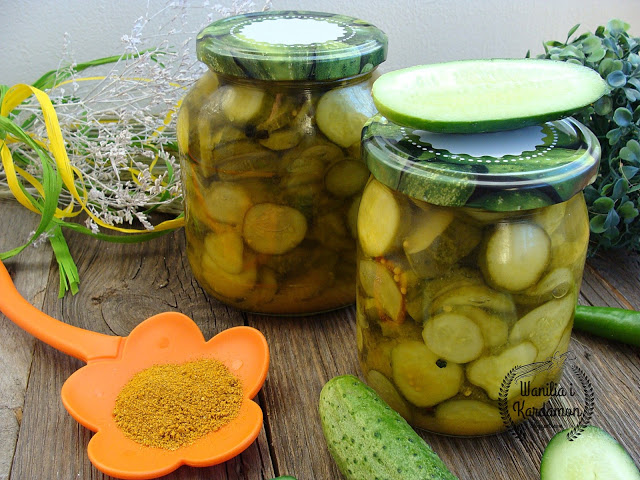 Przepisów na ogórki w zalewie curry i kurkumie jest bardzo dużo-ja eksperymentowałam z nimi kilka razy i wreszcie doszłam do smaku który mi pasuje, dzielę się więc przepisem, polecam jeśli ktoś lubi takie smaki. Do zalewy użyłam octu