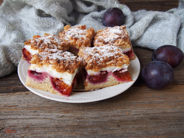 Kruche ze śliwkami i bezą