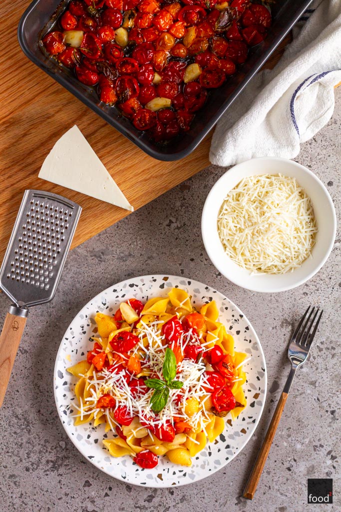 Makaron z pieczonymi pomidorami i serem ricotta salata