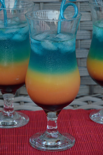Drink w sam raz na upalne dni jakie właśnie mamy. Wygląda bardzo ciekawie, przy czym łatwo się go robi. Jeżeli chodzi o proporcje, to wszystko zależy od tego, w jakiej szklance go podamy. Trzeba pamiętać o zasadzie, że koloru czerwonego ma być najmniej, później dużo żółtego i na samej