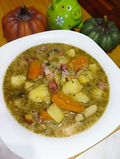Zupa grochowa z mąką smażoną na tłuszczu z boczku
