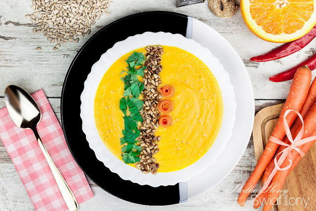 Uzależniająca, aksamitna i kremowa – Zupa Marchewkowa z młodej marchewki z prażonym słonecznikiem. Robi się ją bardzo łatwo i równie szybko. Zupa jest sycąca i tak pyszna, ze ciężko odejść od garnka, żeby jej nie wyjeść prosto z niego 🙂 Mimo tego, że przygotowałam ją na wodzie,