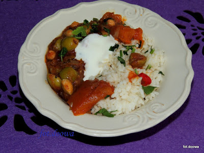 Sycylijska potrawka z dyni, ciecierzycy z rodzynkami.