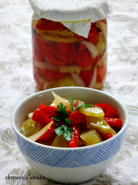 Sałatka w occie i oleju z ogórków i papryki na zimę