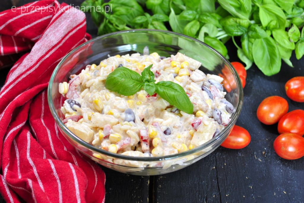 Przepis na pikantną sałatkę z ryżem i kurczakiem. Składniki: podwójna pierś kurczaka…