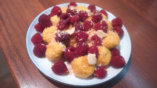 kokosowo-dyniowe kluseczki odsmażane z malinami i masłem orzechowym