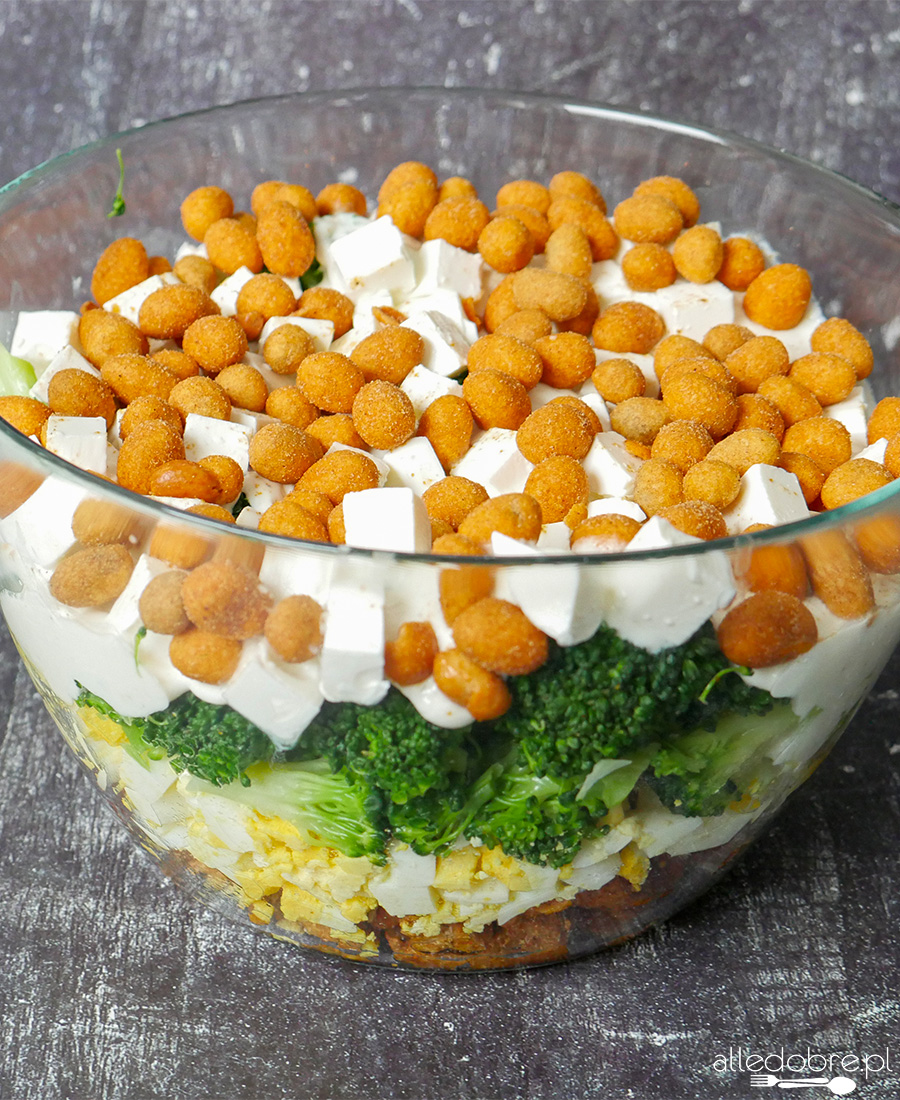 Warstwowa sałatka z chrupiącymi orzeszkami