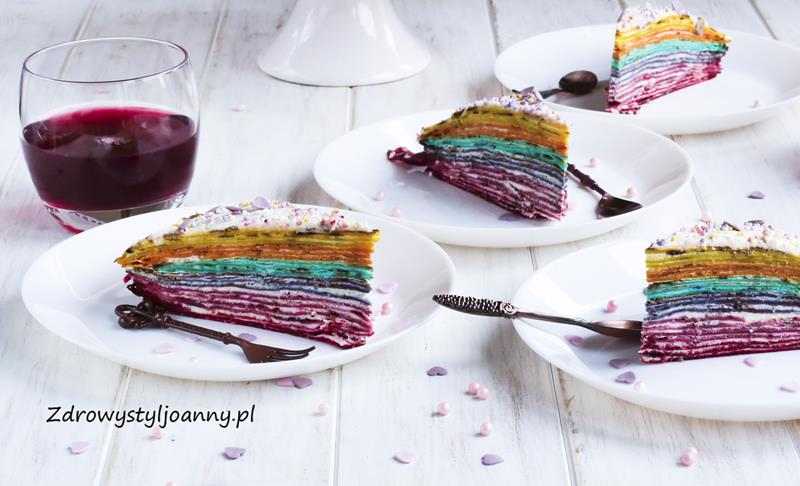Tęczowy tort naleśnikowy.