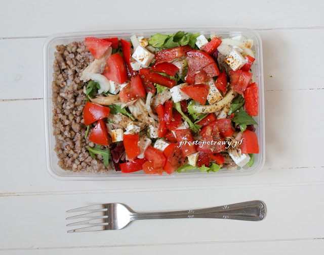 Przygotowanie :Umyte pomidory i obrane ogórki pokroiłam, cebulę podobnieSałaty lekko rozdrobniłam, a ser pokroiłam w małą kostkęPo wymieszaniu składników, całość polałam sosem z musztardy, miodu i soku z cytrynySałatka posypana ziarnami zyskała jeszcze bardziej na