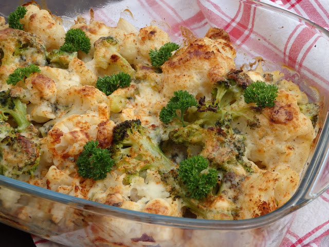 Brokuł i kalafior pod beszamelem i serem pleśniowym