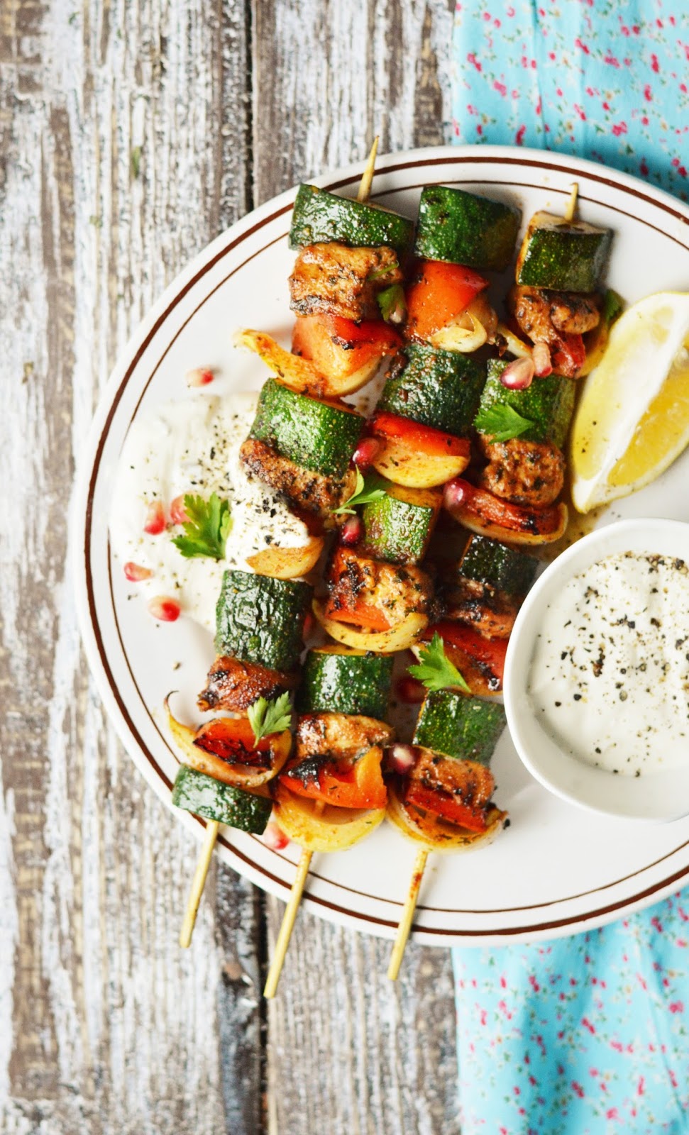 Aromatyczne szaszłyki z kurczakiem, cukinią i papryką