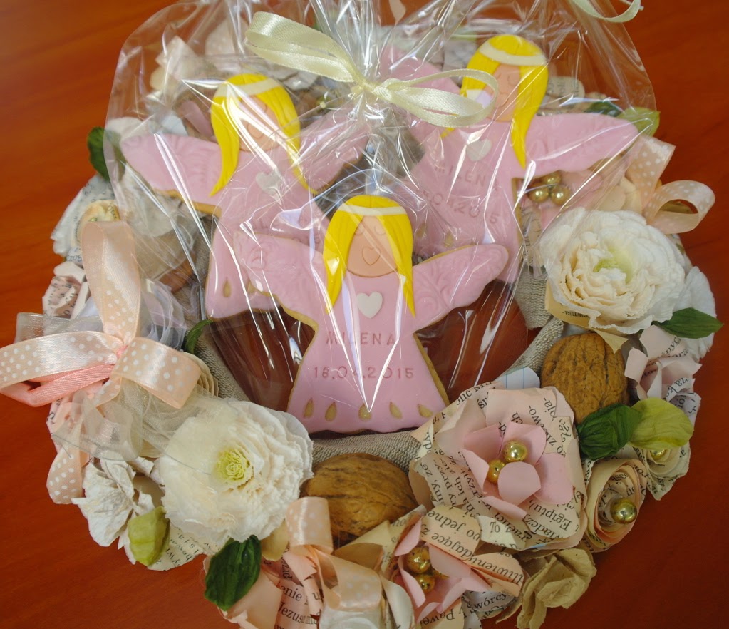 Kochani, Dzisiejsze aniołki wyruszają zaraz na chrzest Milenki. Na ciasteczku znajduje się…
