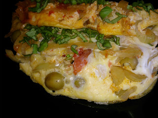 omlet z papryką, pomidorem i oliwkami