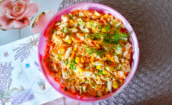 Prosta i szybka w przygotowaniu sałatka do obiadu. Składniki (dla 4-5 osób):…