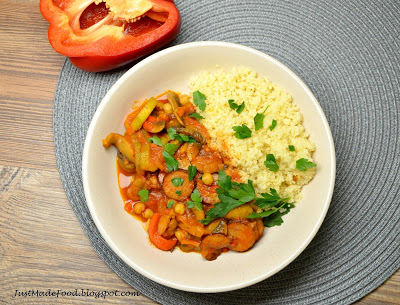 Warzywny gulasz z kiełbasą i ciecierzycą