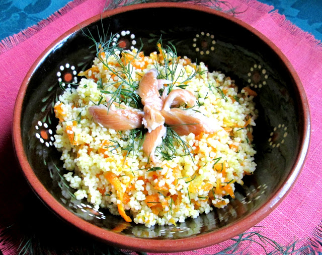 Uwielbiam sałatki z kuskus 🙂 Dziś ekspresowo z dodatkiem wędzonego łososia. Składniki:1…