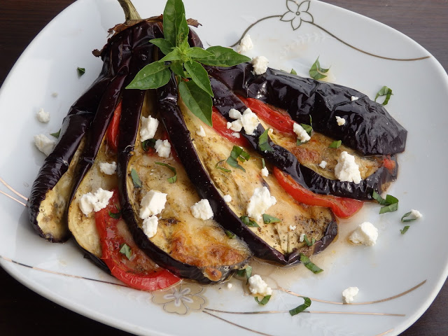 Bakłażany nadziane pomidorami i mozzarellą ciekawie prezentują się w postaci kolorowego wachlarza.…