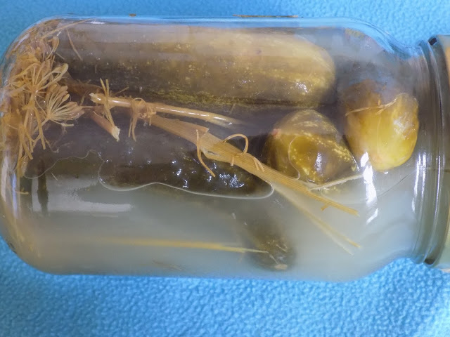 1 kg ogórków6 ząbków czosnkukorzeń chrzanu3 liście porzeczkiduży koper sól (1 łyżka na litr wody)