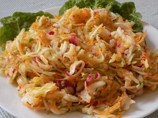 Składniki: 1 cukinia1 marchewka1/2 pora1 jabłko4-5 rzodkiewekłyżka posiekanego koperku2 łyżeczki oliwysól, pieprz…