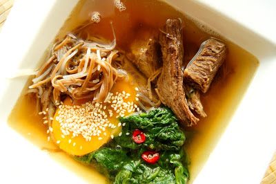 Rosołek z azjatyckim twistem i pyszną wołowiną w słodkim sosie. Gorąco polecam. Uwaga przed wykonaniem przepisu należy się wyposażyć w takie składniki jak sos sojowy, słodki sos chili, sos teriyaki, świeży imbir, makaron soba oraz trawę cytrynową.