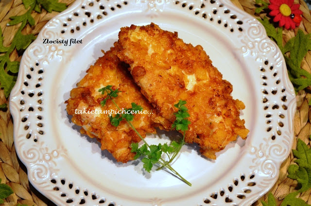 Świetne filety w chrupiącej panierce z płatków kukurydzianych. Wcześniej „zamarynowane” w aromatycznych przyprawach. Doskonałe danie, polecam do tego surówkę z marchwi lub z selera.Doskonale smakują też solo, jako przekąska , lub dodatek na kanapkę w towarzystwie zielonej sałaty i pomidora.