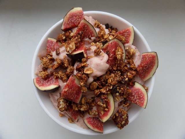 lody banana-figa podane z domową granolą i figą
