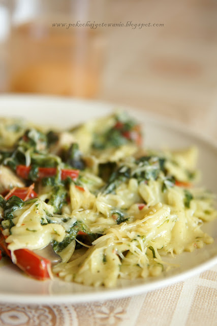 – ok. 300g makaronu kokardki