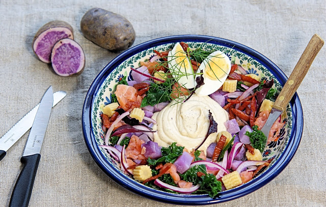 Fioletowe ziemniaki odkryliśmy osiem lat temu na rynku małego miasteczka w Peru – ojczyźnie ziemniaka. Widok worków napełnionych fioletowymi cudeńkami stojącymi obok worków napełnionych kolorowymi kukurydzami, egzotycznymi roślinami i wieloma innymi odmianami ziemniaków wywołał ogromne zdumienie. Sprzedawcy wiedzieli wszystko o ziemniakach i z wielką wprawą dobierali odpowiednią odmianę do planowanej