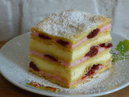Tym razem z nadzieniem wiśniowym, a jedna warstwa dodatkowo przełożona masą z