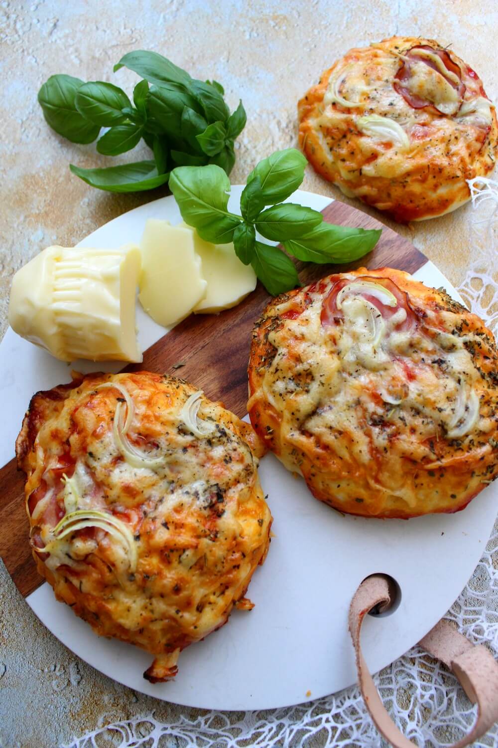 Pizzerinki z serem górskim, cebulką, wędliną i przyprawami Dziś na drugie danie…