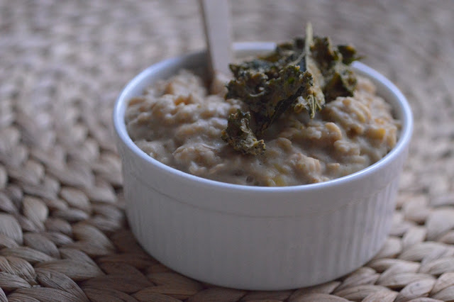 kremowa owsianka bananowa z masłem orzechowym i chipsami z jarmużu w maśle…