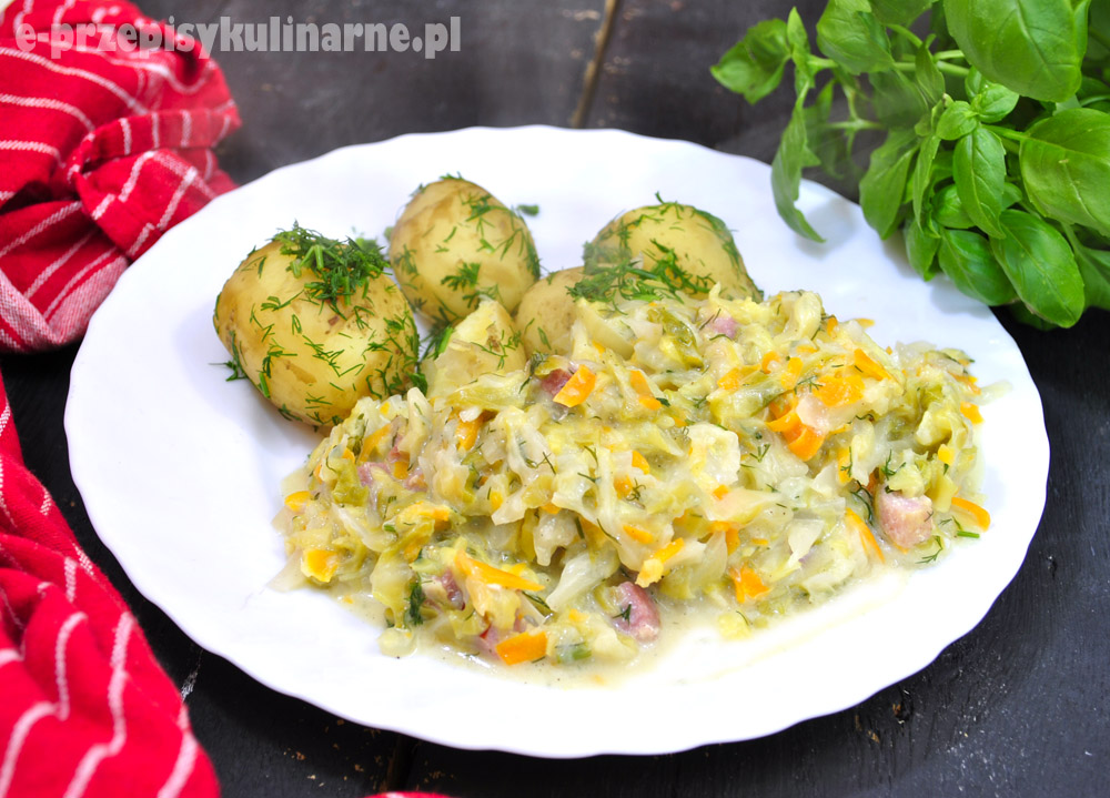 Przepis na pyszne danie sezonowe z młodą kapustą. Składniki: główka młodej kapusty…