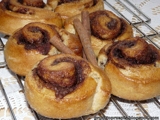 Wypiekanie na śniadanie po raz kolejny zainspirowało ciekawym przepisem. Piekliśmy tym razem bułeczki czekoladowo-cynamonowe Erica Lanlarda z książki „Czekolada”. Moja wersja jest zdeczko okrojona, bo z połowy oryginalnych składników, z dodatkiem mąki pełnoziarnistej oraz bez wykończenia lukrowego – i tak słodyczy w tych