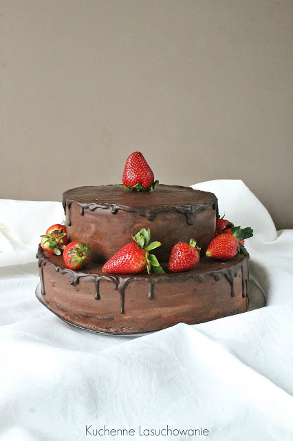 Ten wyjątkowy przepis skrywałam już dawno, uznałam, że będzie idealny na jesień, kiedy u wielu z Nas rośnie zapotrzebowanie na czekoladę. Czekolada, czekolada i czekolada. Tort nie jest lekki i puszysty. To ciasto z gatunku tych cięższych, intensywnych lecz miękkich, mięsistych. Jest wilgotny i długo utrzymuje świeżość. Wykonanie