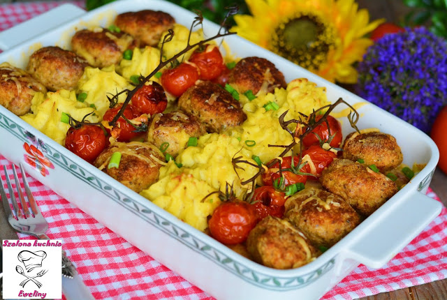 Pachnąca zapiekanka z wyrazistym musztardowym puree, świetnie doprawionym mięsnymi kuleczkami i słodkimi…