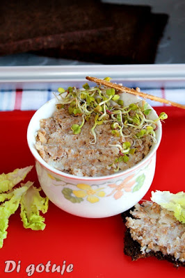 Smalec z fasoli z cebulą i chrupiącymi skwarkami z kaszy gryczanej