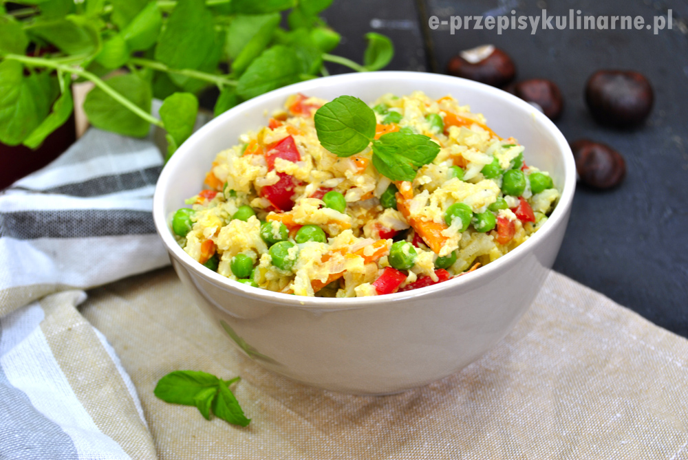 Przepis na szybki, bezmięsny obiad czyli ryż smażony z jajkiem i warzywami.