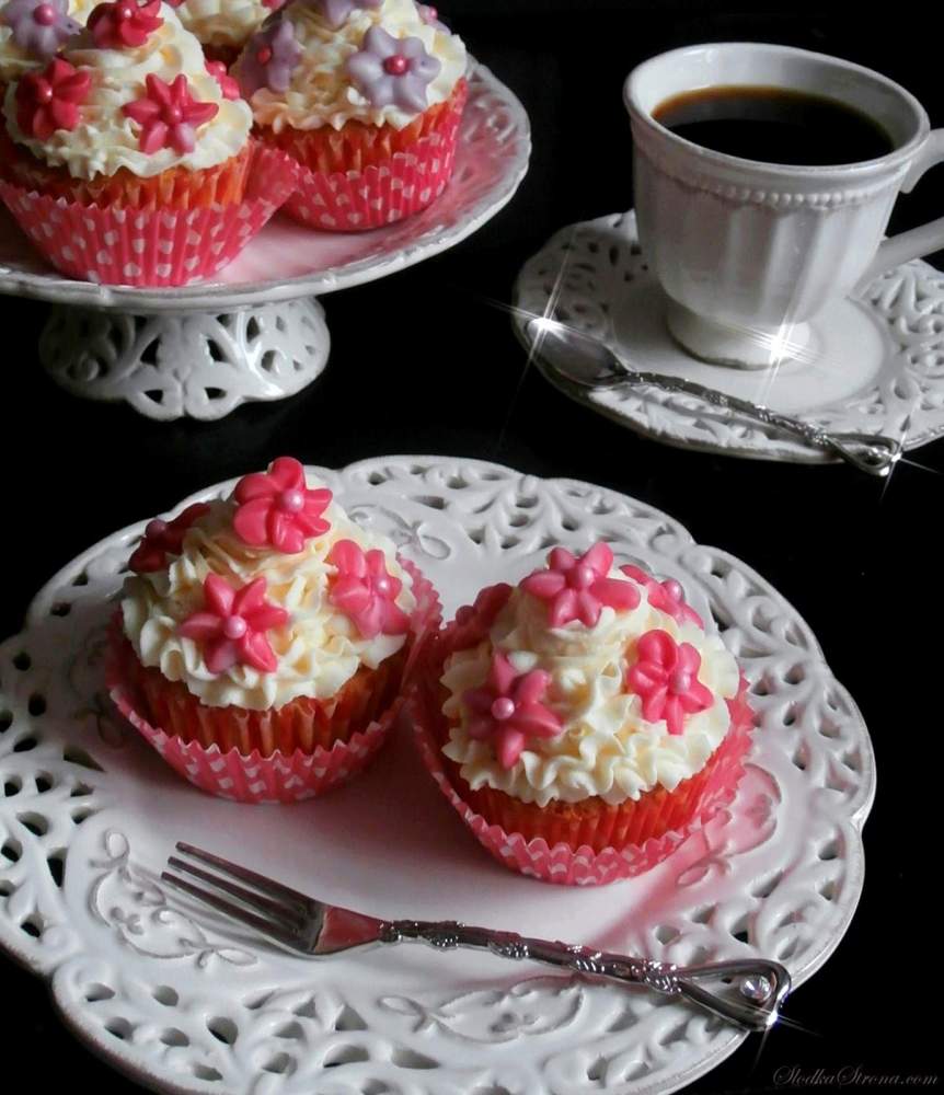 Urocze babeczki na klasycznym, delikatnym spodzie z aksamitną masą na bazie białej…