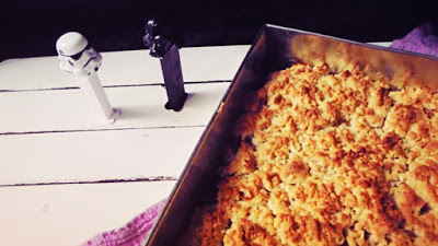 Dzisiaj mamy polską premierę Gwiezdnych Wojen, wydarzenie to nie mogło przejść bez echa w moim domu. Bilety na pokaz czekają, czeka też ciasto. Ciasto, którym poczęstowałabym Dartha Vadera. No tak, gdyby wpadł do mnie na herbatkę, albo i na czarną kawę-pewnie do nie mu nieco bliżej,poczęstowałabym go szarlotką. Taką tradycyjną,