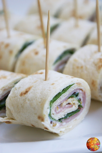 Przygotowanie: Składniki na sos mieszamy ze sobą. Na desce układamy pierwszą tortillę, smarujemy 1/4 śmietankowego serka. Kładziemy plaster szynki babuni,