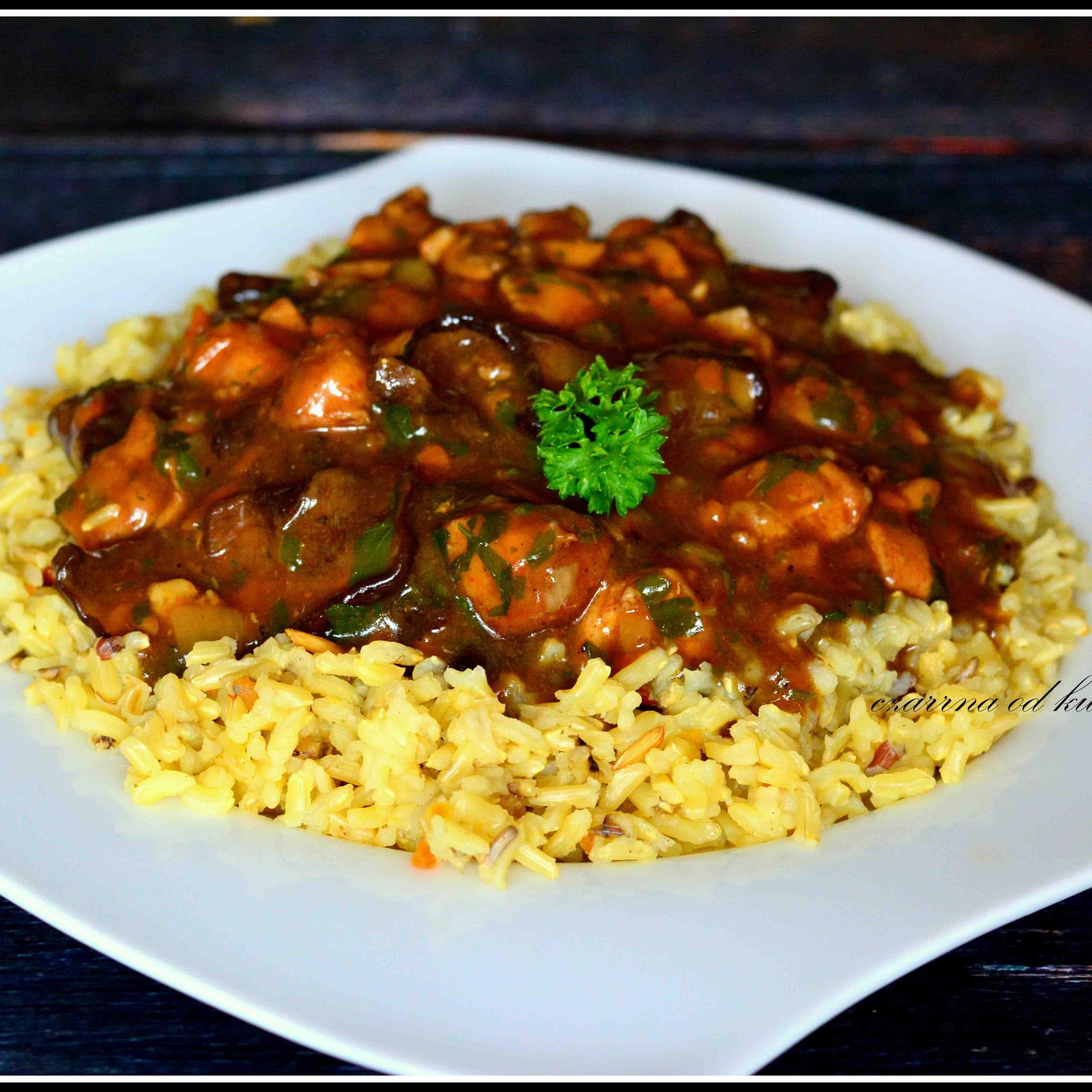Składniki: 300 g mięsa z udek kurczaka 20 g suszonych grzybów 1…