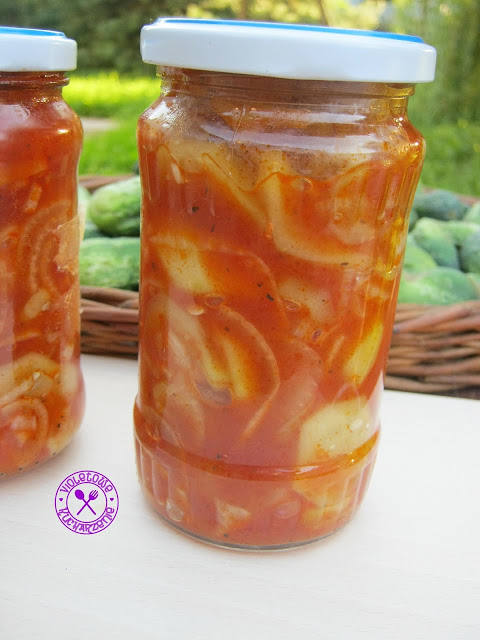 Słodkawa z nutą chilli sałatka z ogórków i cebuli. Rewelacyjna na kanapki…