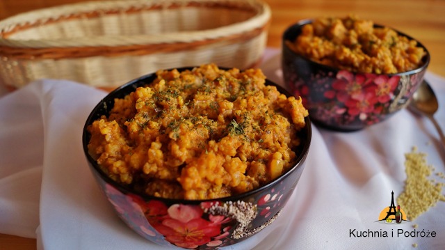 Składniki:– 1 szklanka kaszy jaglanej– 3 małe marchewki– 1/3 łyżeczki kurkumy– 1…