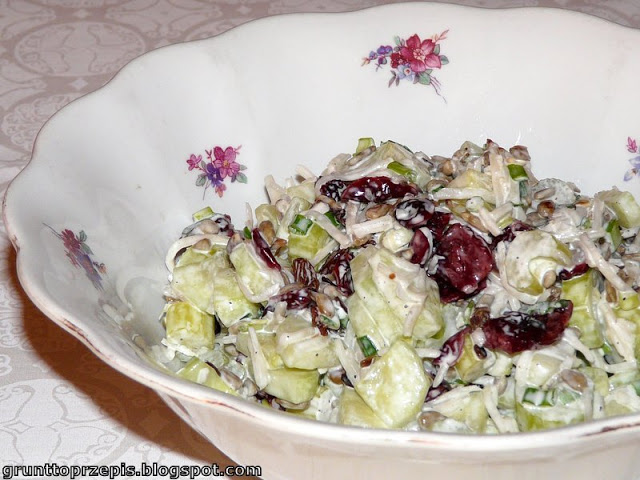 Świeże połączenie warzyw i suszonych bakalii w lekkiej sałatce