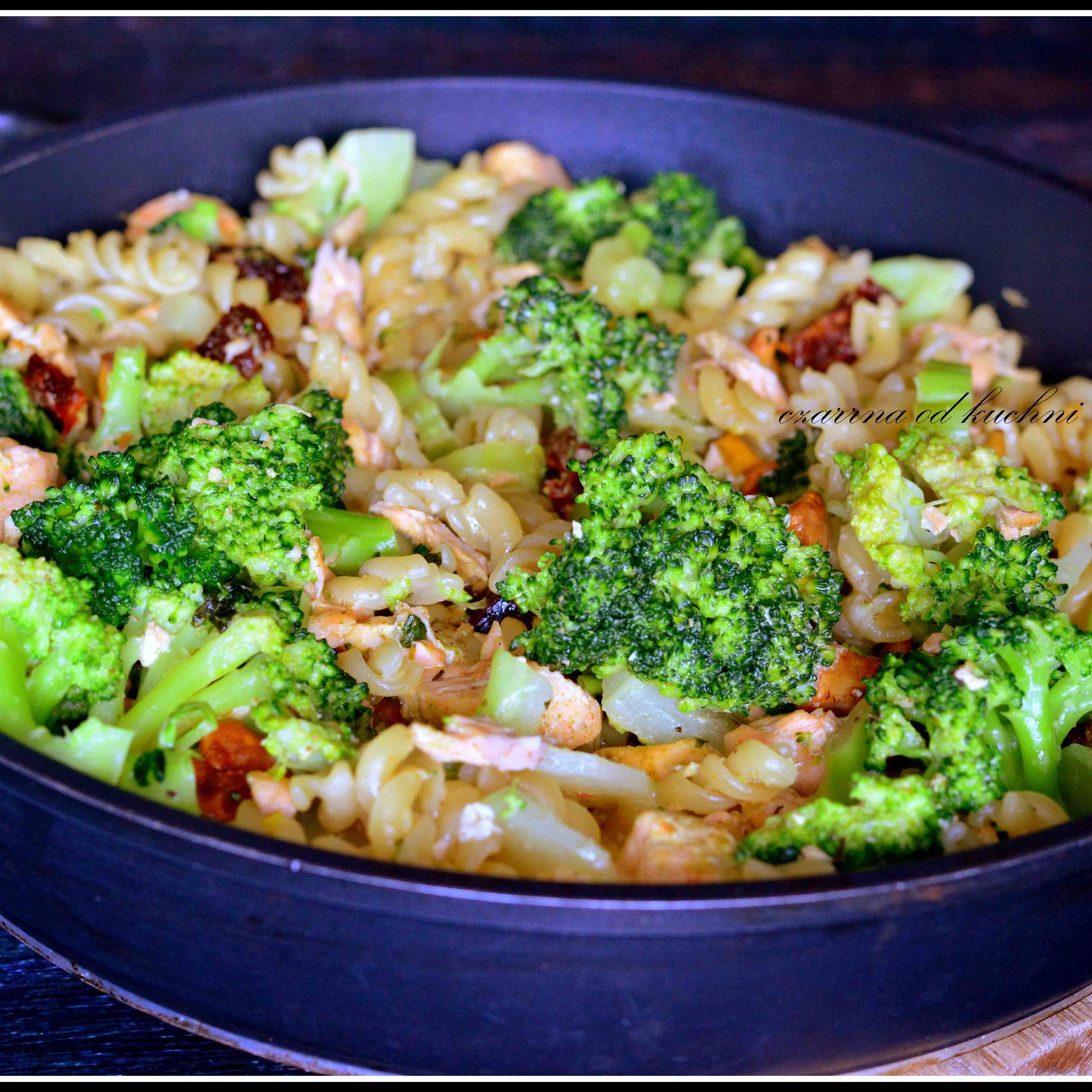 Składniki: 300 g fileta z łososia 1/2 brokuła 10 g suszonych pomidorów…