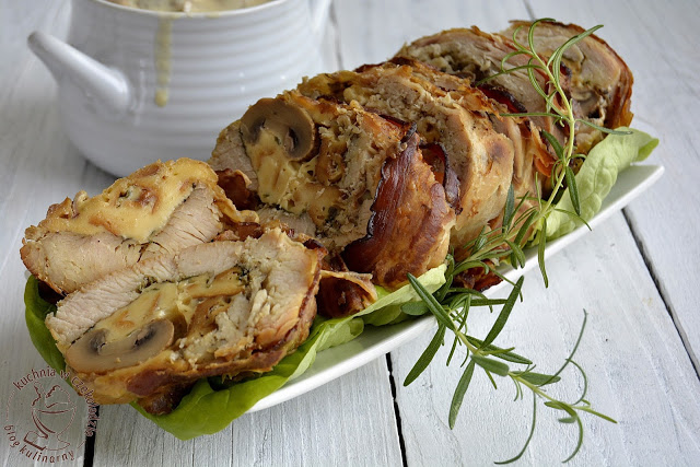 W towarzystwie wędzonego sera, pieczarek i w boczku stanowiła pyszny dodatek do drugiego dania. Podana z ziemniaczkami, surówką i sosem pieczarkowym smakowała mi najbardziej.