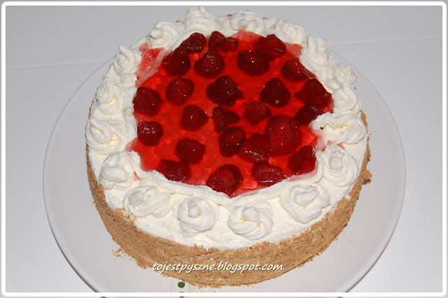 Tort wykonany z biszkoptu w tortownicy o średnicy 22 cm (mały).