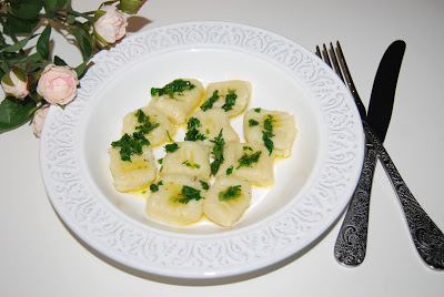 Przysmak z ziemniaków. Można je podawać na różne sposoby. W jednej z włoskich restauracji próbowałam z truflami i ten smak czuję do dzisiaj. Niestety ja takich nie przygotowałam, bo grzybów takich nie posiadam 🙂 . Podałam polane ziołowym masełkiem, ale możecie również je