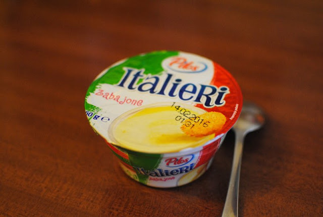 Będąc w Lidlu kupiłam ostatnio ten jogurt, ponieważ zaciekawił mnie jego smak- zabajone. Lubię testować nowości 🙂 Jak wypadł?Opakowanie we włoskich