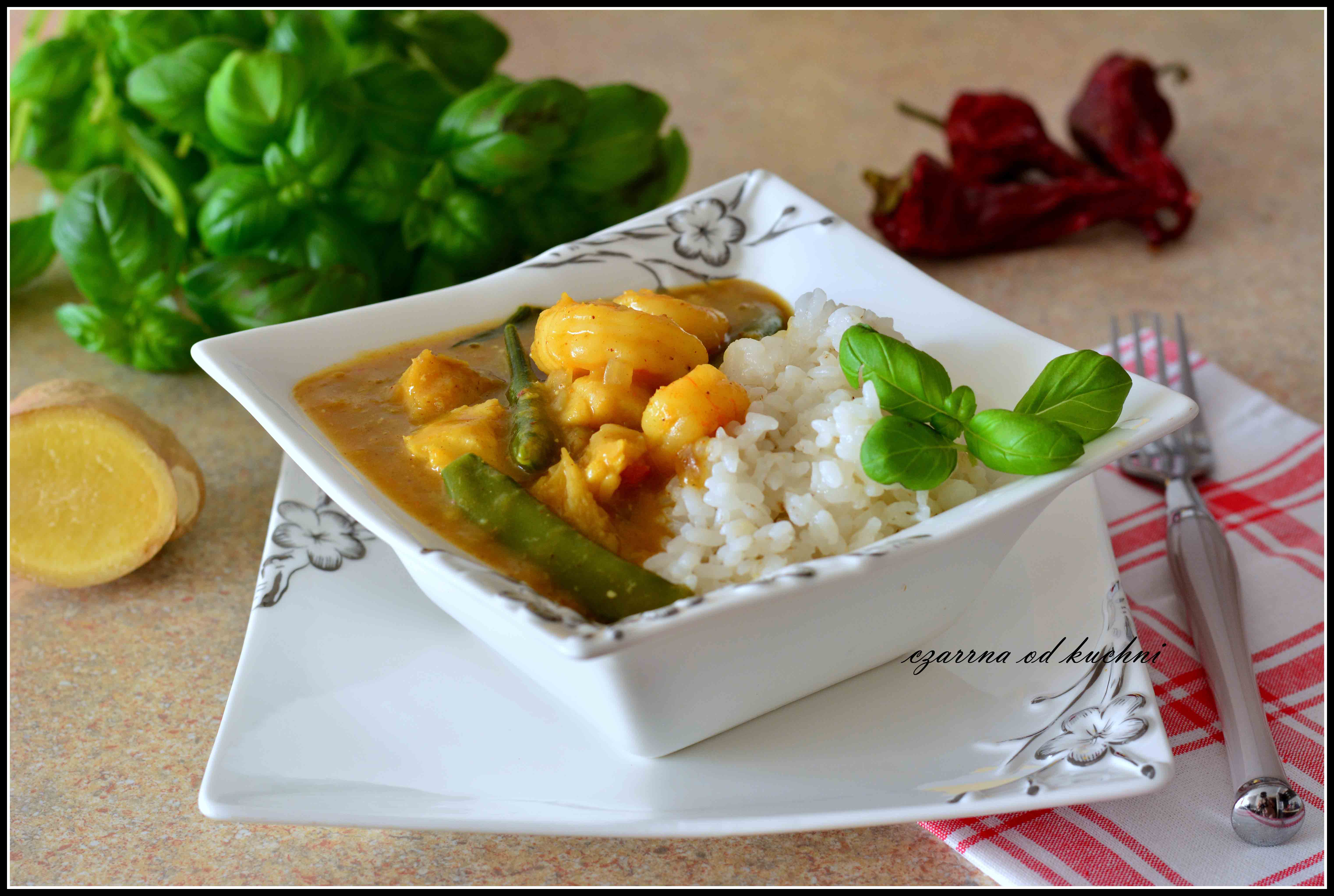 Rybne curry z krewetkami i groszkiem cukrowym